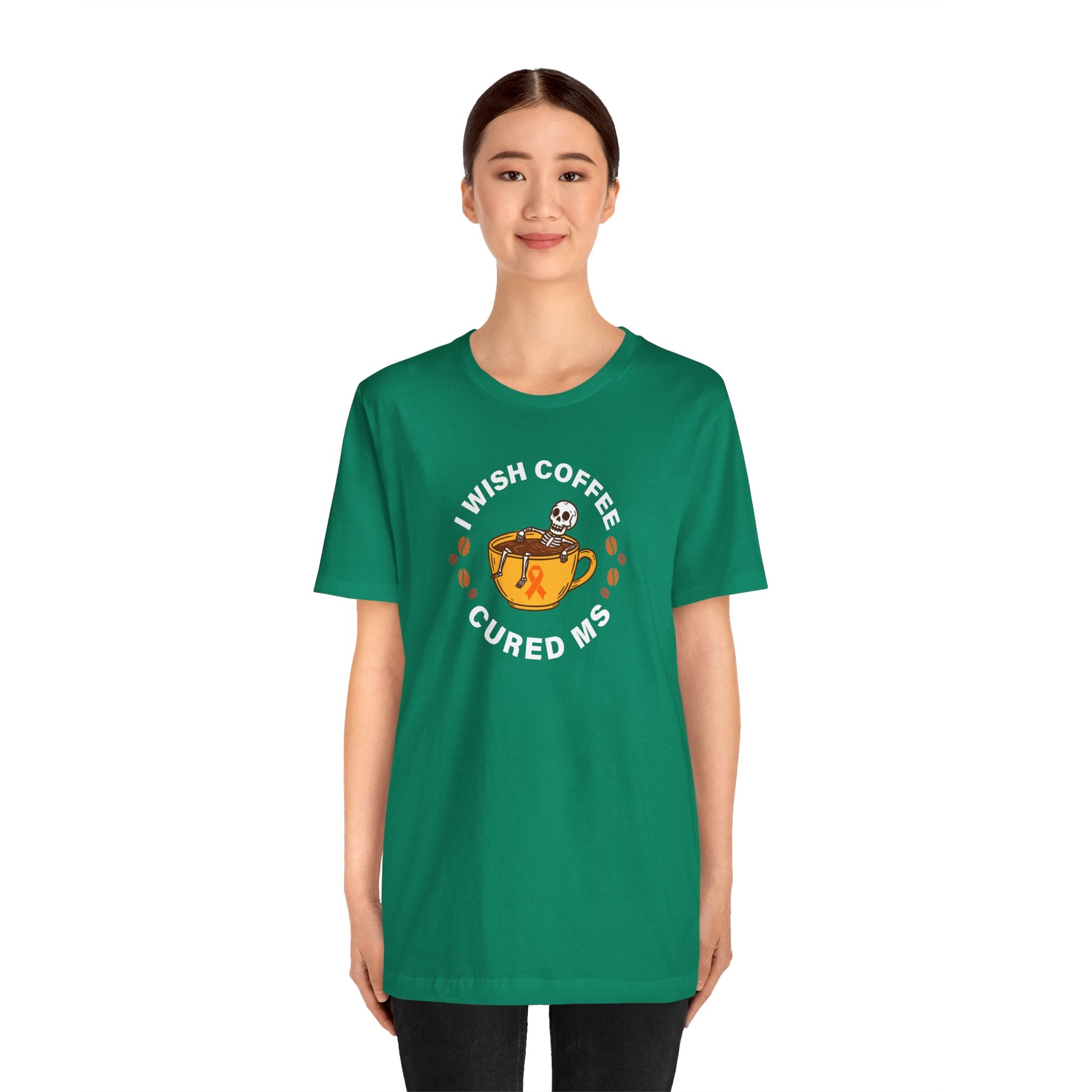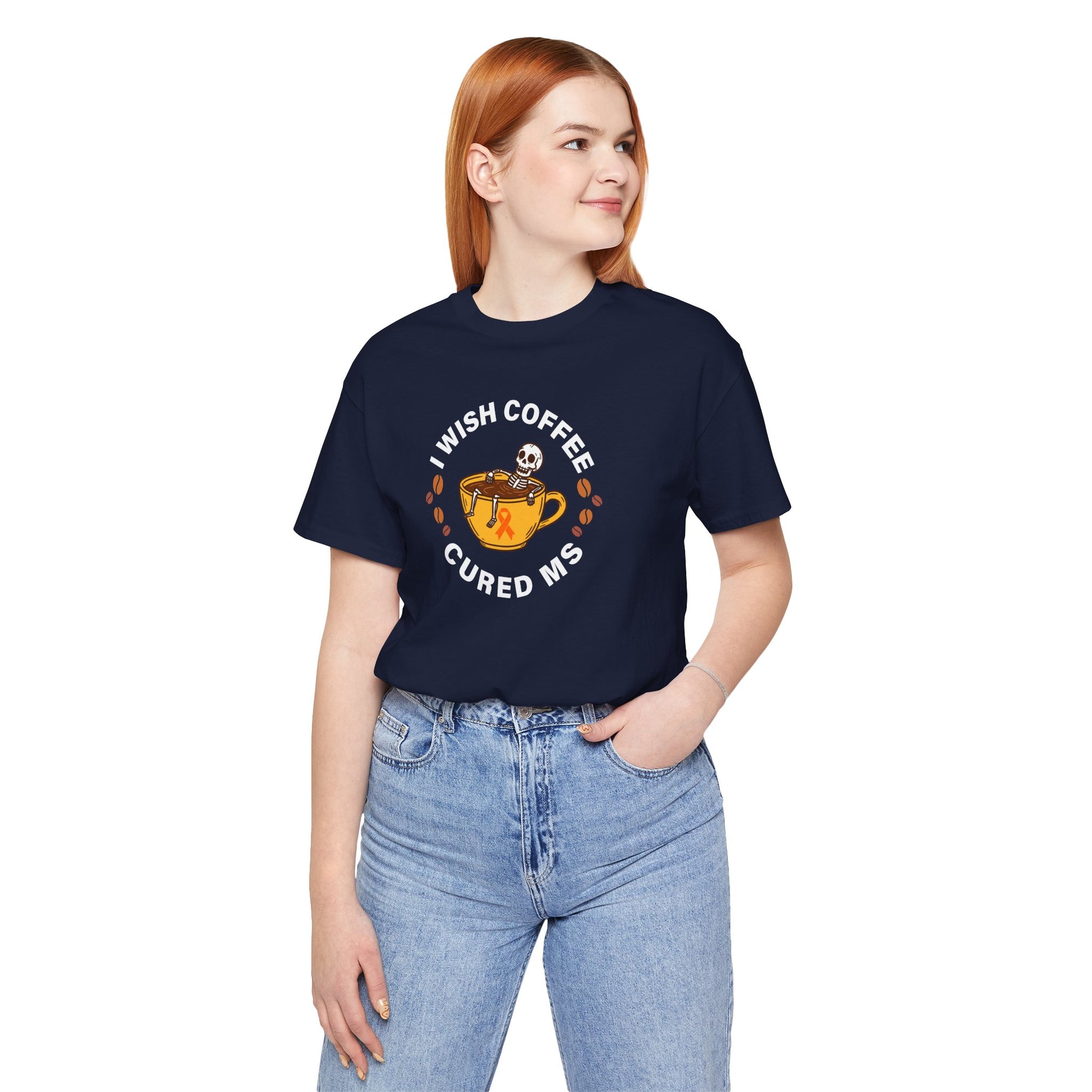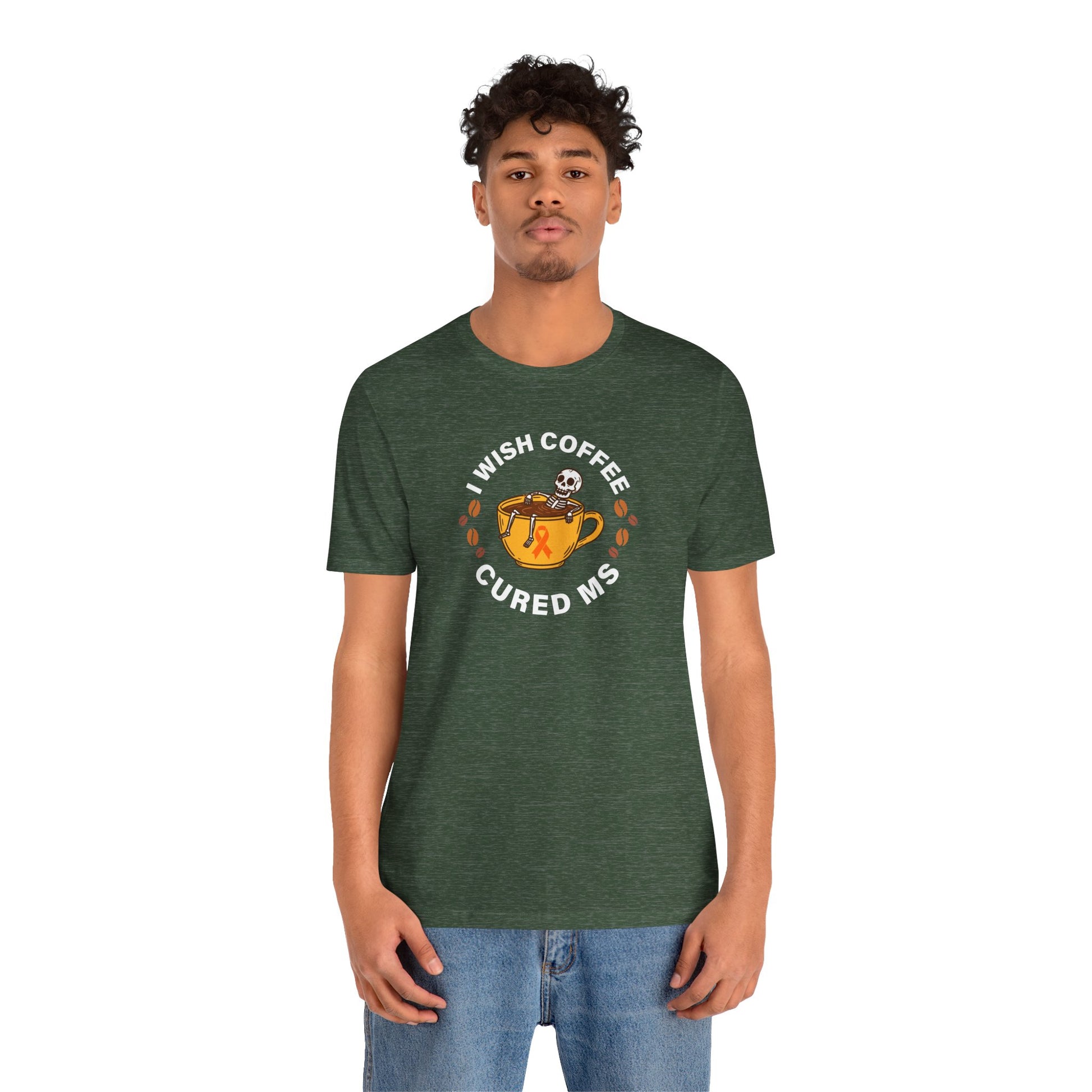 Cute I Wish COFFEE Cured MS - Adult Tee Multiple Sclerosis Awareness, Charity Shirt, Unisex, Gift for Supporters, Fundraising Apparel