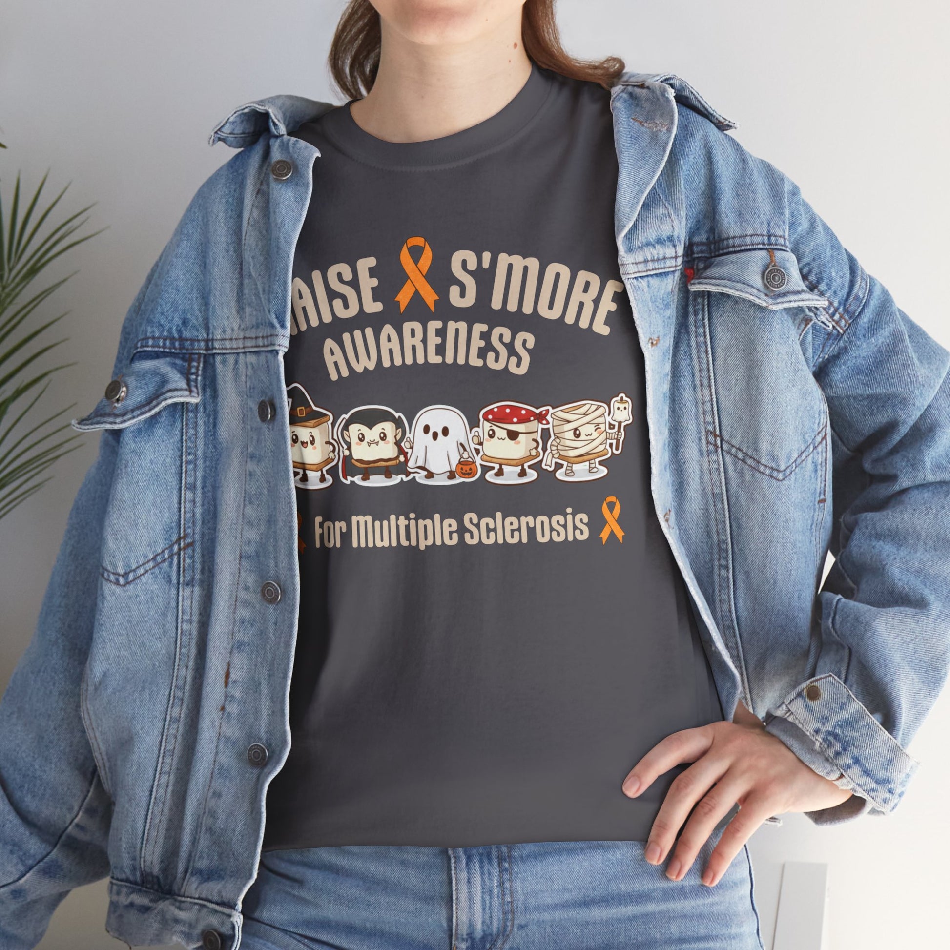 Show your support for Multiple Sclerosis awareness with this fun and unique t-shirt. Featuring a playful "Raise S'More Awareness" design, this shirt is a sweet way to advocate for a cause close to your heart. It's perfect for awareness events, fundraisers, or everyday wear to spark conversations and spread hope.