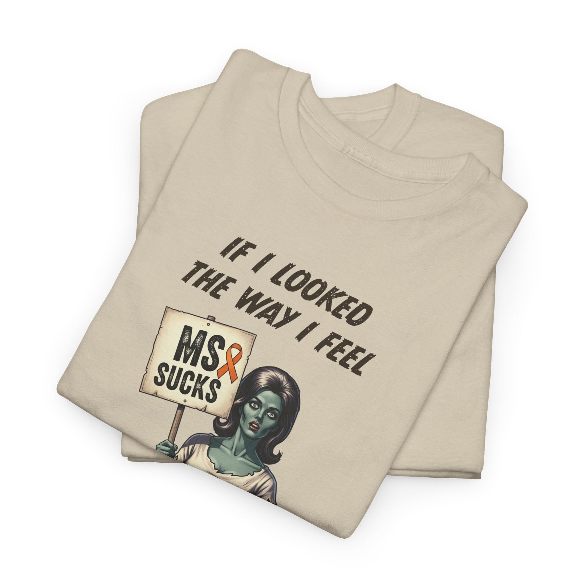 If I Looked the Way I Feel Unisex Heavy Cotton Tee MS Awareness, Funny Gift, MS Support, Casual Wear